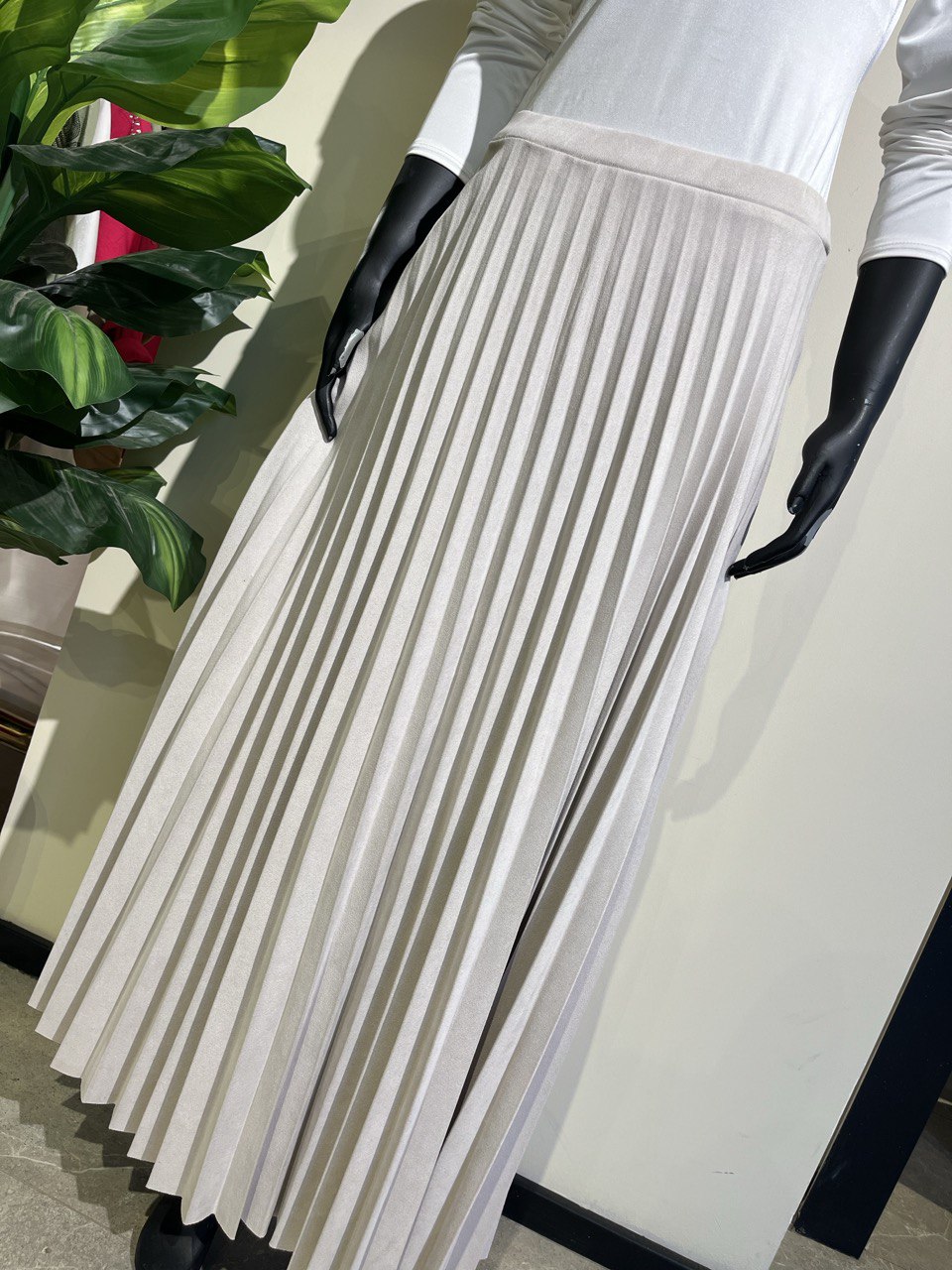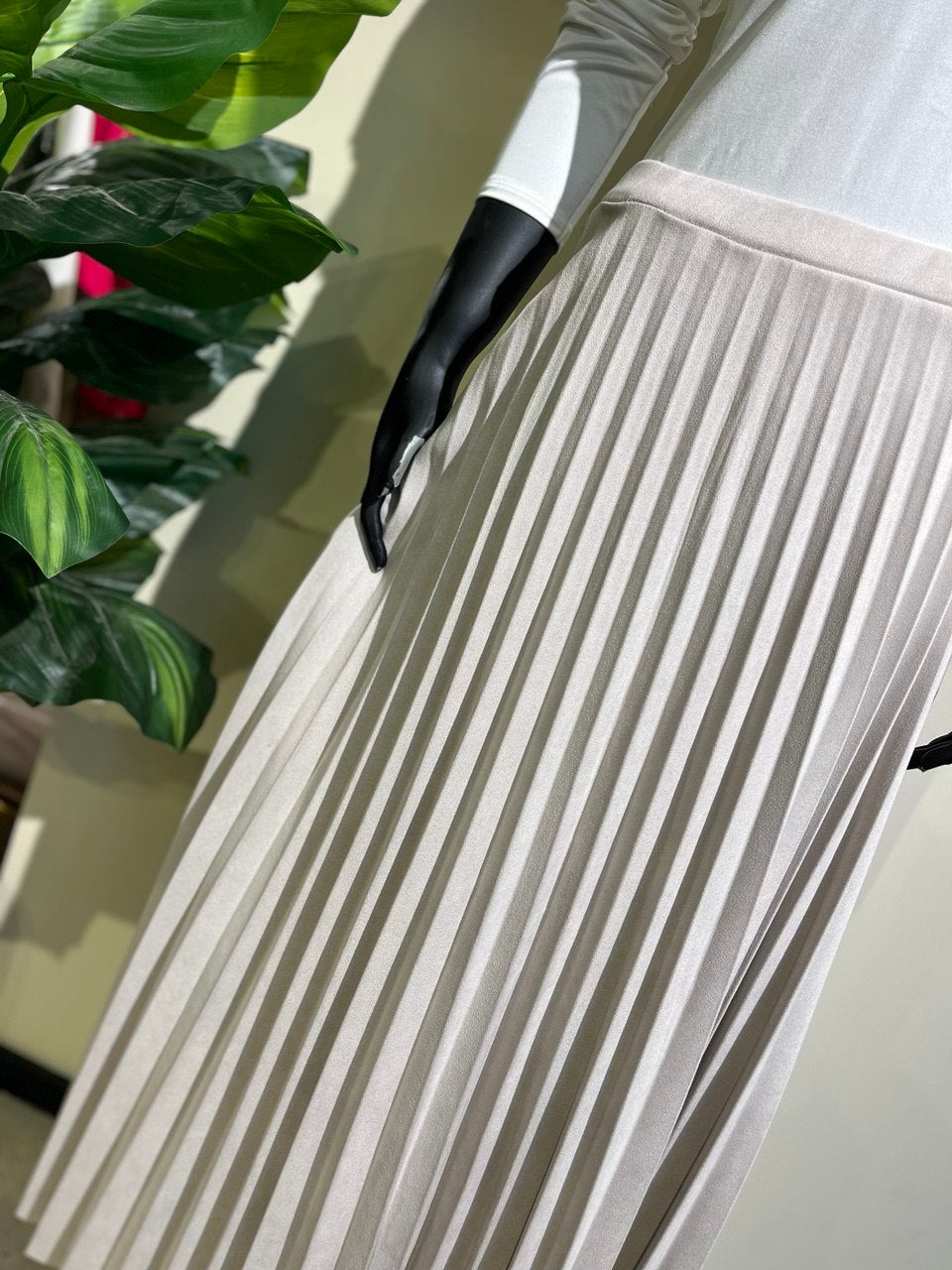 Skirt Pleated White Gray Chamwa